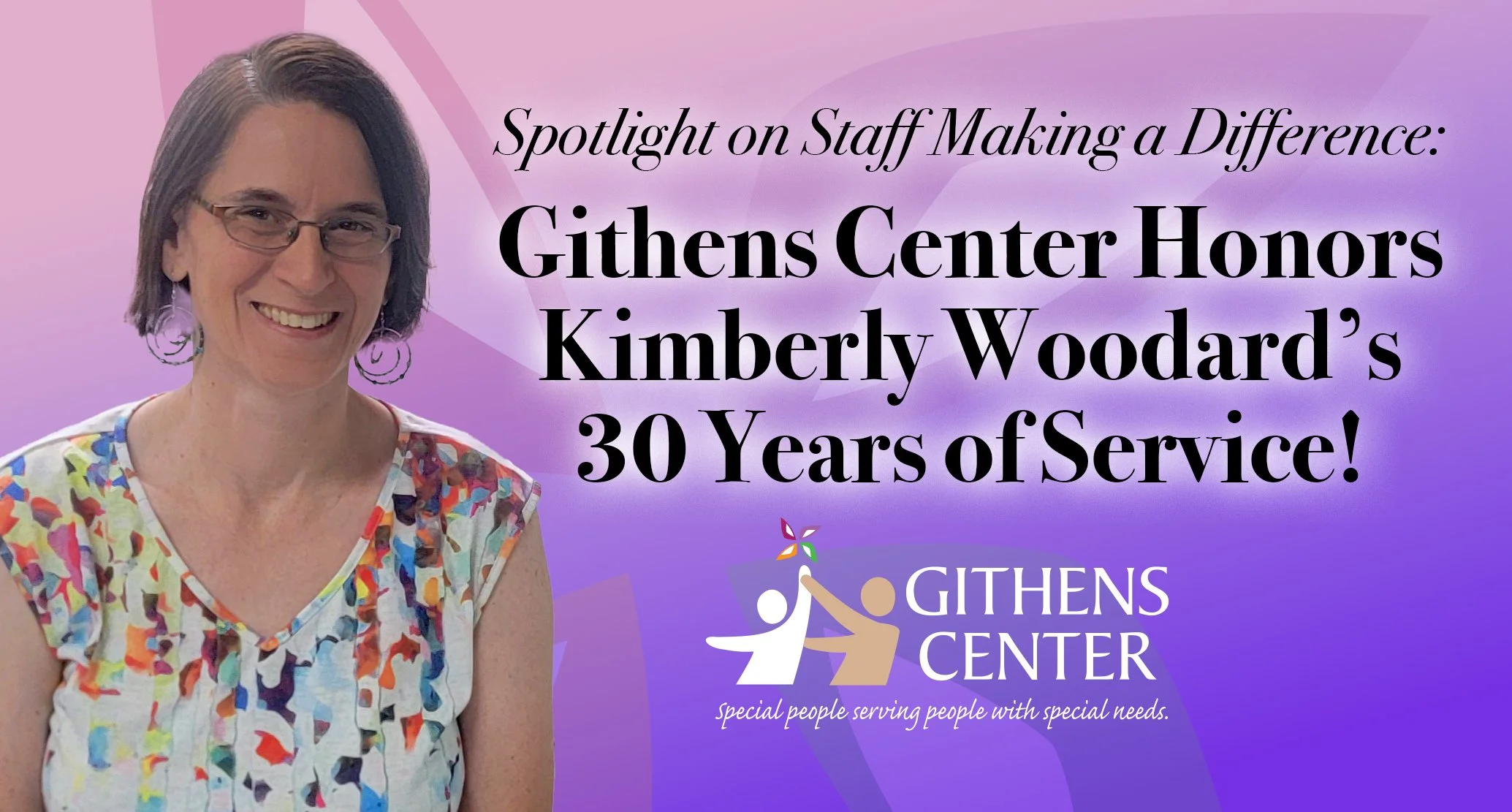 Githens Center proudly celebrates Kimberly Woodard’s remarkable 30-year journey of service and dedication. For three decades, Kim has touched the lives of individuals with multiple disabilities through her compassion, commitment, and unwavering support.